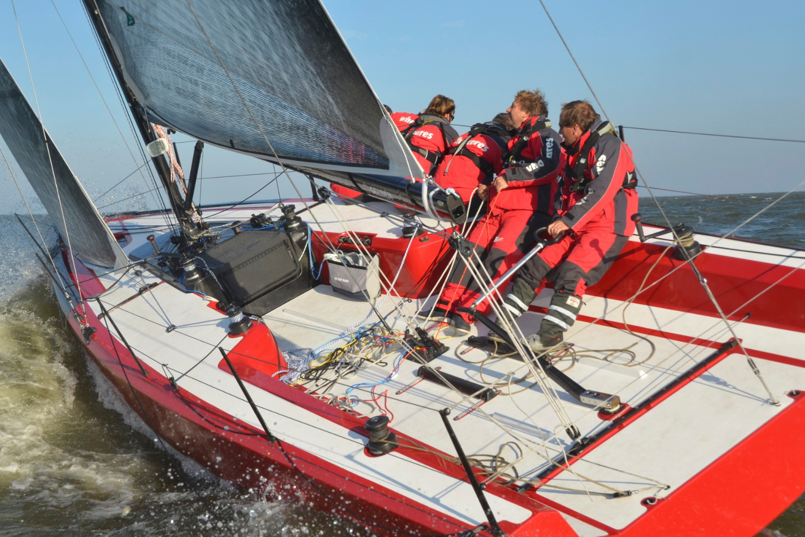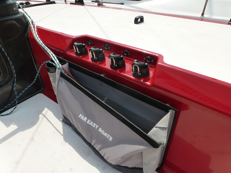 The deck layout is kept clean as all control lines are situated under decks, running to the exact right place within easy reach of the trimmers. Helmsman foot rests can be adjusted for a perfect steering position.